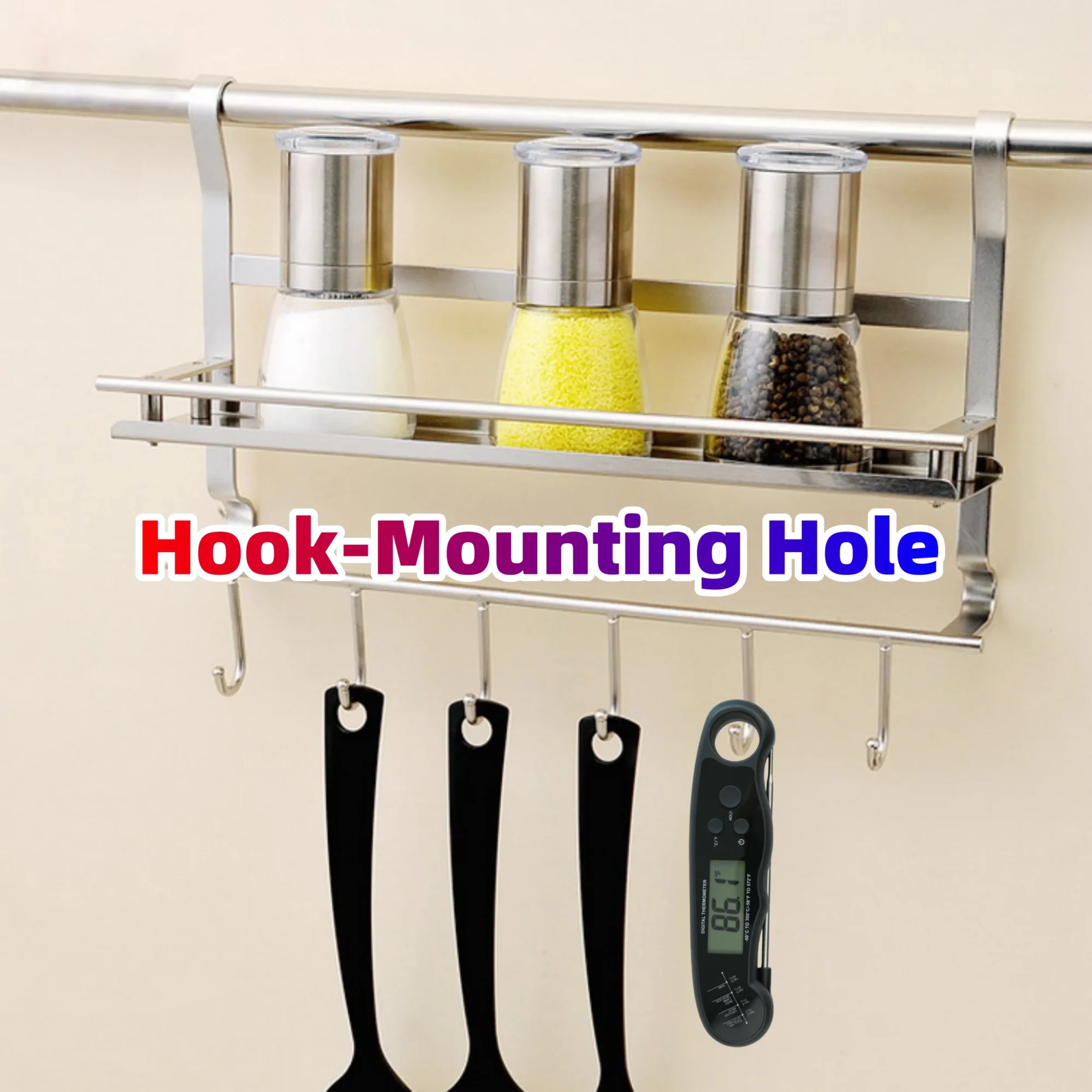 [CONVENIENCE IN LIFE STARTS WITH SIMPLE OPERATION]–The probe reads when unfolded, and closes when restored to its original position. It automatically closes after 3 minutes when not in use, saving power and providing peace of mind. The magnet and hanging hole design of the cooking thermometer will help you store it better. You can attach it directly to the refrigerator, or hang it on a hook to make your kitchen tidier.