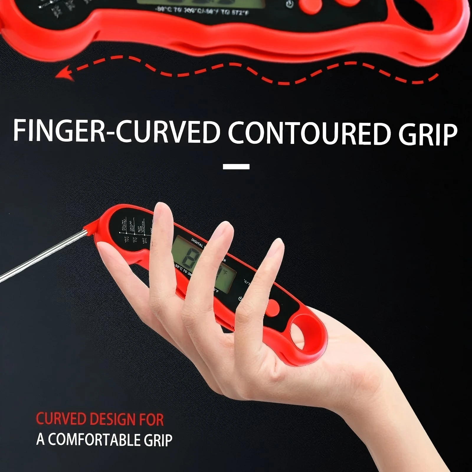 [READING TURNS OUT TO BE SO SIMPLE]–The meat thermometer digital has a large LED display with backlight. You can clearly see the numbers on the display. At the same time, clicking the “light” button in extremely dark scenes can help you better obtain the temperature value of food. If you want to keep the temperature fixed, you just need to click the “Hold” button to keep the food at its most delicious moment.